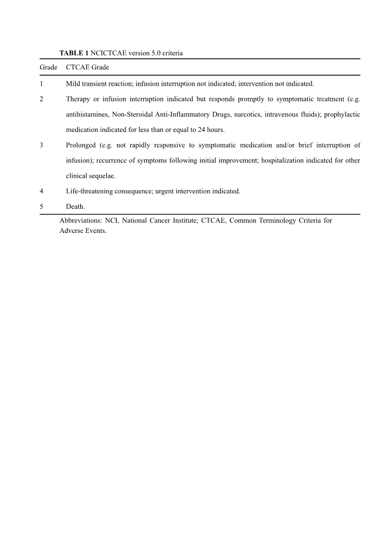 The severity of AEs should be evaluated based on the NCICTCAE version 5.0 criteria33, as outlined in the Table 1, and the CTCAE Grade 4-5 is considered as SAE in this clinical study.